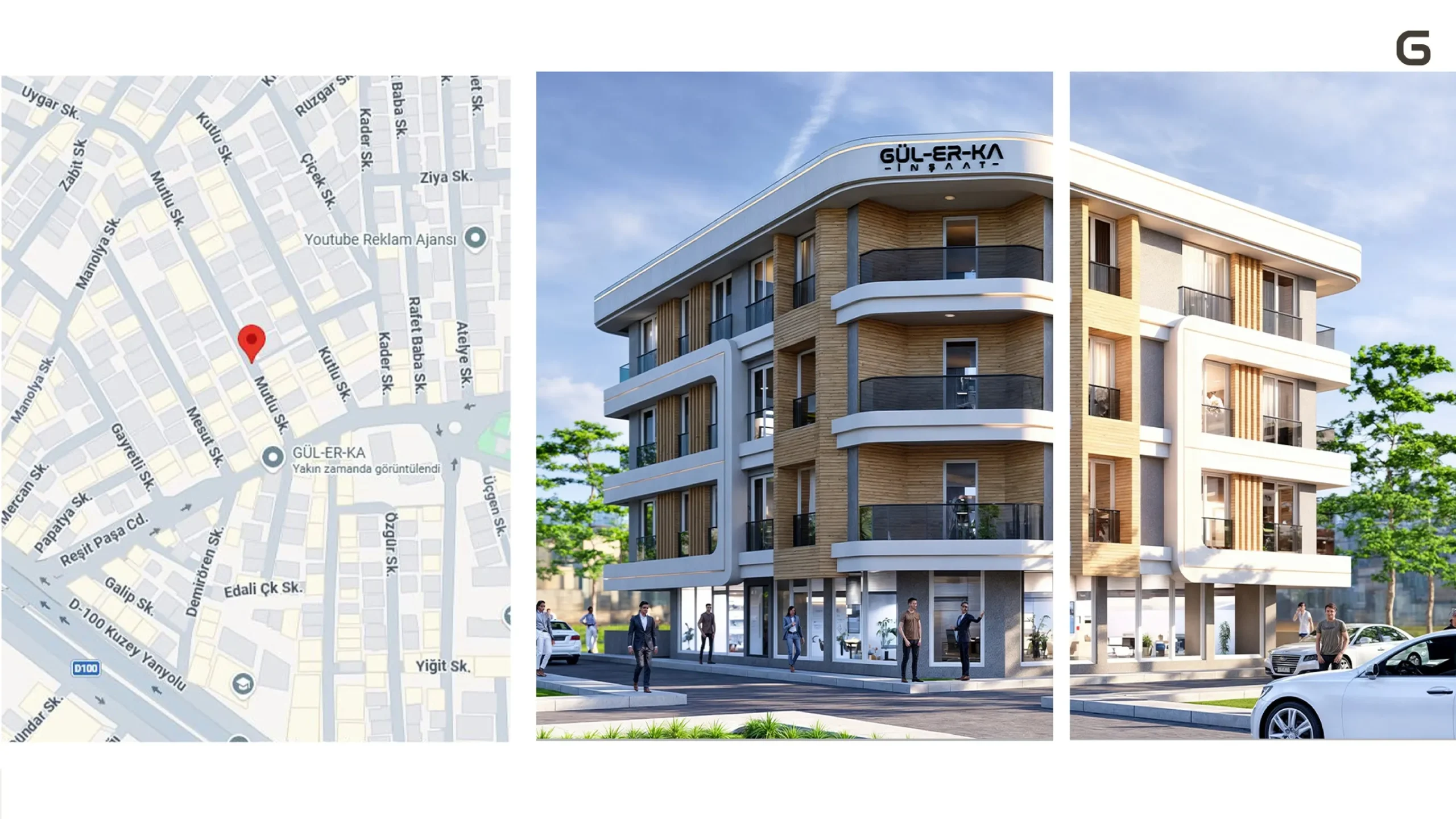 Her cephesi özenle tasarlanan Gülerka yapıları; estetiği, dayanıklığı ve fonksiyonelliği bir arada sunar. Doğal ışığı içeriye davet eden geniş cam yüzeyler, yalın formlar ve modern hatlar.